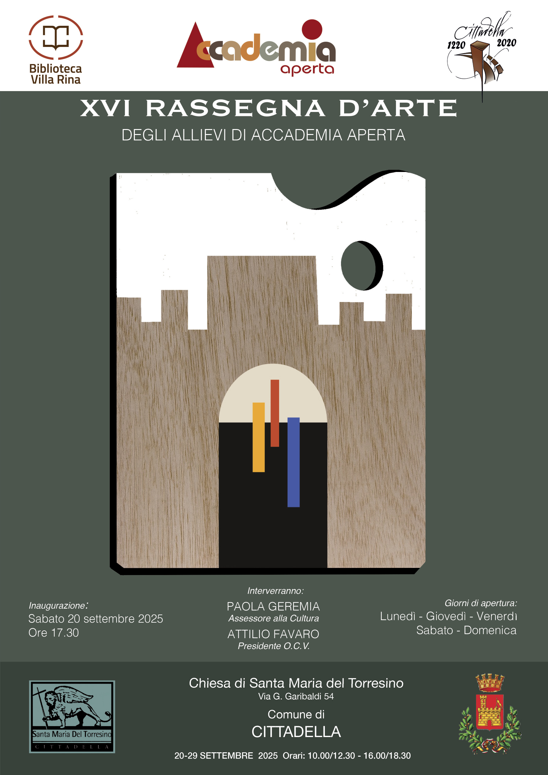 A chiusura corso, Accademia Aperta organizza presso la chiesa del Torresino di Cittadella, una esposizione con i migliori lavori realizzati durante l’anno dai partecipanti.